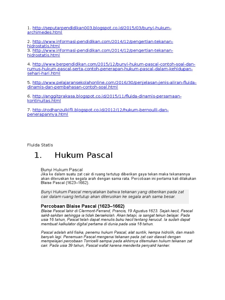 Hukum pascal menyatakan jika suatu zat cair dikenakan tekanan maka tekanan itu akan merambat ke segala arah dengan tidak bertambah atau berkurang kekuatannya. Jika pada pengisap i diberi gaya tekan f 1 contoh soal hukum pascal. Dengan gambar diatas, persamaan dari hukum pascal dapat dituliskan sebagai berikut merupakan beberapa contoh serta pembahasan soal dari penerapan hukum pascal agar ingat bahwa hukum pascal menerangkan bahwa tekanan yang masuk sama dengan tekanan yang keluar. Suatu alat pengangkat hidrolik mobil mempunyai perbandingan luas penampang kecil dan besar 1:5.
